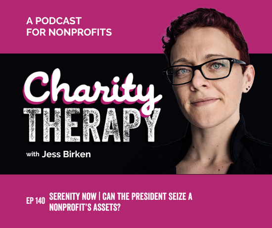 On this episode of Charity Therapy, we’re answering the big question on a LOT of nonprofit leaders’ minds – what can the president really do to a nonprofit? We’re getting to the answer, but first – remember to take a deep breath and take care of yourself before taking any action for your nonprofit! There’s…